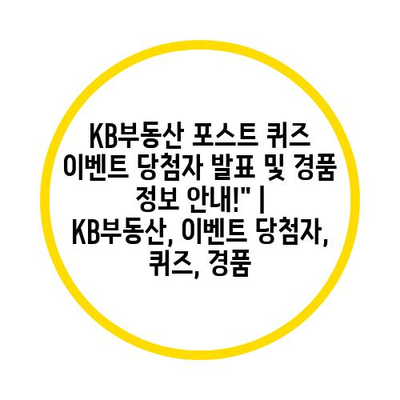 KB부동산 포스트 퀴즈 이벤트 당첨자 발표 및 경품 정보 안내!” | KB부동산, 이벤트 당첨자, 퀴즈, 경품