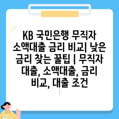 KB 국민은행 무직자 소액대출 금리 비교| 낮은 금리 찾는 꿀팁 | 무직자 대출, 소액대출, 금리 비교, 대출 조건