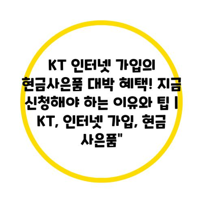 ✅ KT 인터넷 가입 시 받을 수 있는 현금사은품의 모든 정보를 놓치지 마세요!
