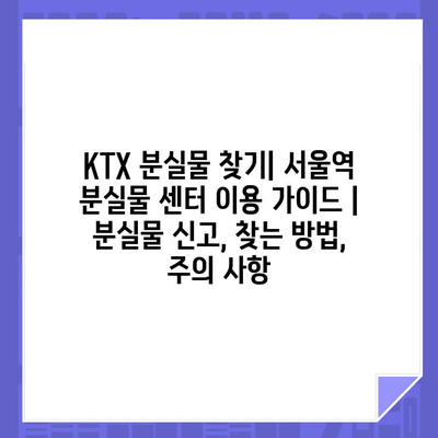 KTX 분실물 찾기| 서울역 분실물 센터 이용 가이드 | 분실물 신고, 찾는 방법, 주의 사항