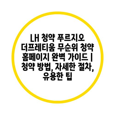 LH 청약 푸르지오 더프레티움 무순위 청약 홈페이지 완벽 설명서 | 청약 방법, 자세한 절차, 유용한 팁