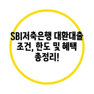 SBI저축은행 대환대출 조건, 한도 및 혜택 총정리!