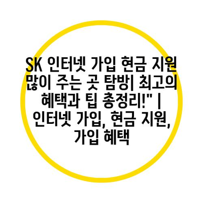 SK 인터넷 가입 현금 지원 많이 주는 곳 탐방| 최고의 혜택과 팁 총정리!” | 인터넷 가입, 현금 지원, 가입 혜택
