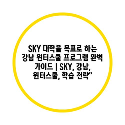 SKY 대학을 목표로 하는 강남 윈터스쿨 프로그램 완벽 설명서 | SKY, 강남, 윈터스쿨, 학습 전략