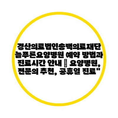 경산의료법인송백의료재단 늘푸른요양병원 예약 방법과 진료시간 안내 | 요양병원, 전문의 추천, 공휴일 진료”