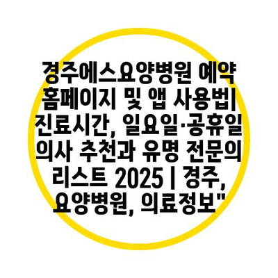 경주에스요양병원 예약 홈페이지 및 앱 사용법| 진료시간, 일요일·공휴일 운영, 추천 의사 정보 총정리 | 요양병원, 전문의, 2025″