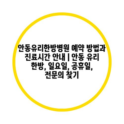 안동유리한방병원 예약 방법과 진료시간 안내 | 안동 유리 한방, 일요일, 공휴일, 전문의 찾기