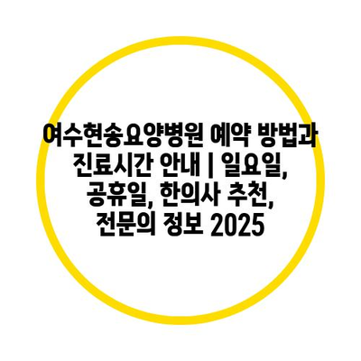 여수현송요양병원 예약 방법과 진료시간 안내 | 일요일, 공휴일, 전문의 추천, 2025 최신 정보