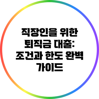 퇴직금 대출: 한도와 활용 방법 알아보기 직장인이라면 퇴직금을 어떻게 활용할지 고민하는 경우가 많아요. 퇴직금은 단순히 퇴사 후 받을 금액이 아니라, 중요한 금융 자산이에요. 그렇다면 퇴직금 대출의 한도와 활용 방법에 대해 알아볼까요? ✅ 퇴직금 대출의 유용성과 적용 방법을 자세히 알아보세요. 👉 퇴직금 대출 활용하기 퇴직금 대출이란 무엇인가요? 퇴직금 대출은 회사를 퇴사하지 않고도, 퇴직금의 일부를 미리 대출받는 … 더 읽기
