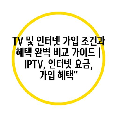 TV 및 인터넷 가입 조건과 혜택 완벽 비교 설명서 | IPTV, 인터넷 요금, 가입 혜택
